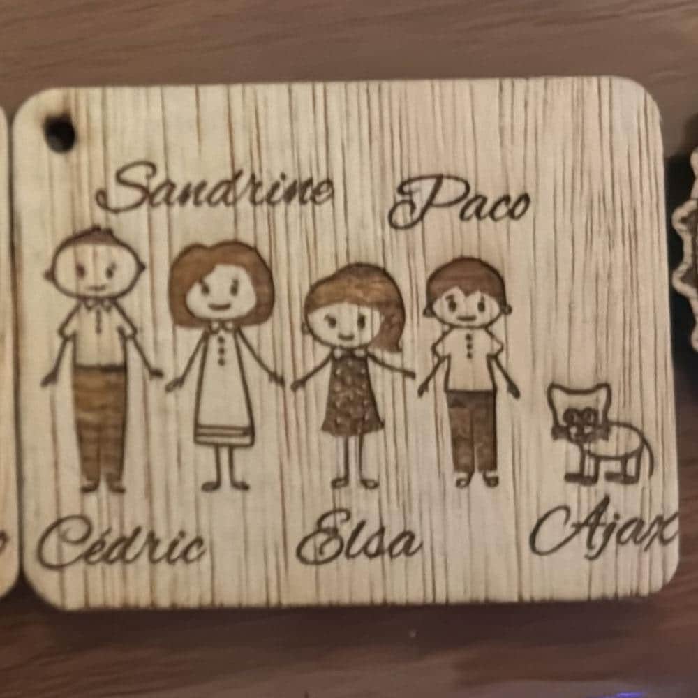 Personnalise ton porte-clés famille avec des silhouettes et coiffures uniques pour chaque membre. Un souvenir précieux et durable.