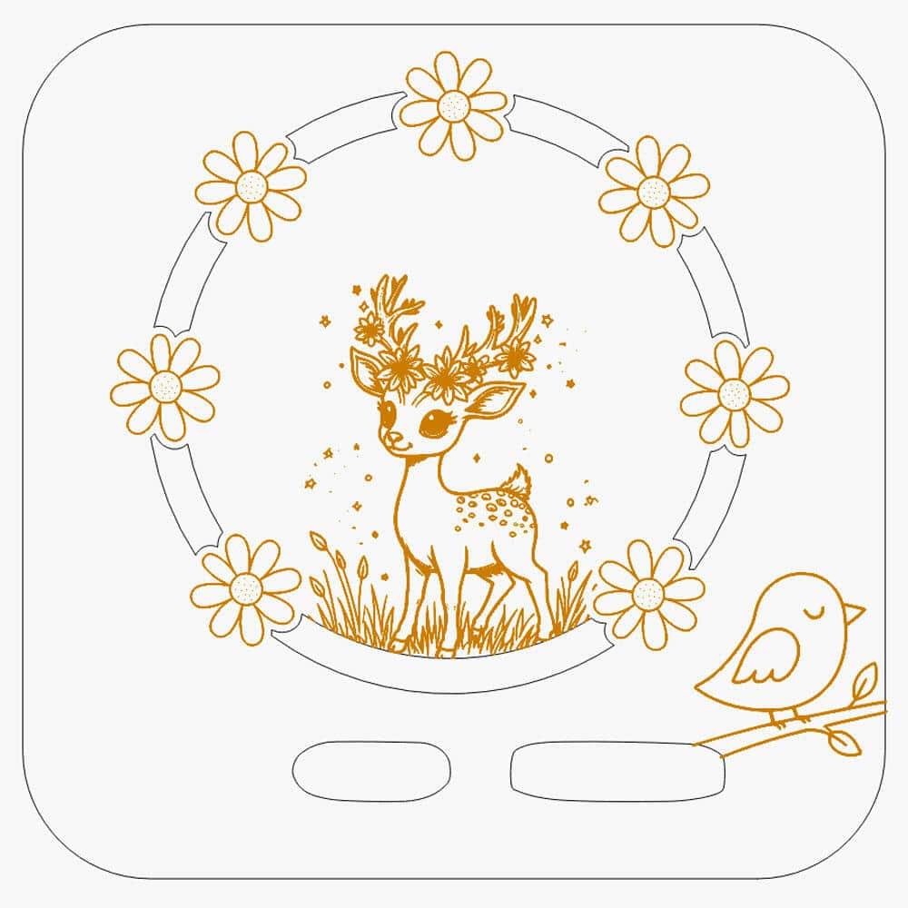 Fabriquée en bois brut ultra fin (1,5 mm), elle recouvre délicatement le dessus de ta Toniebox tout en laissant passer la lumière grâce à un trou adapté au thème choisi.